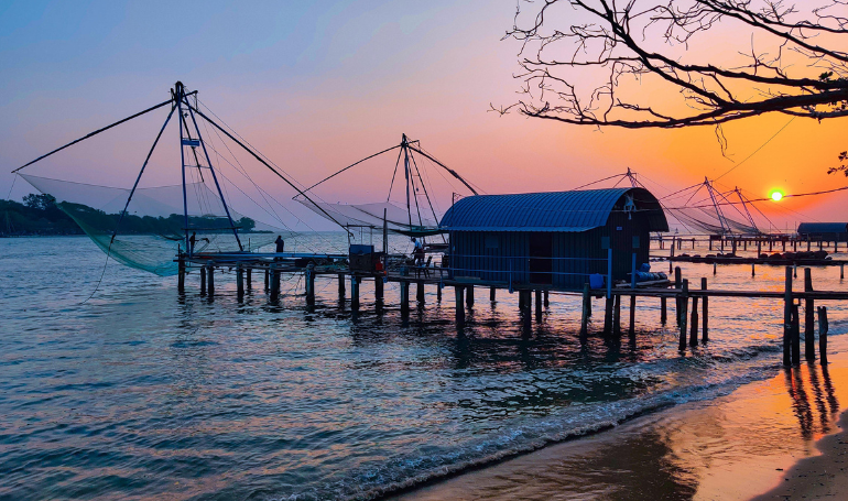 • Experience the vibrant culture of Kochi (Cochin) by exploring Fort Kochi’s colonial heritage, Chinese fishing nets, Mattancherry Palace, and St. Francis Church.
